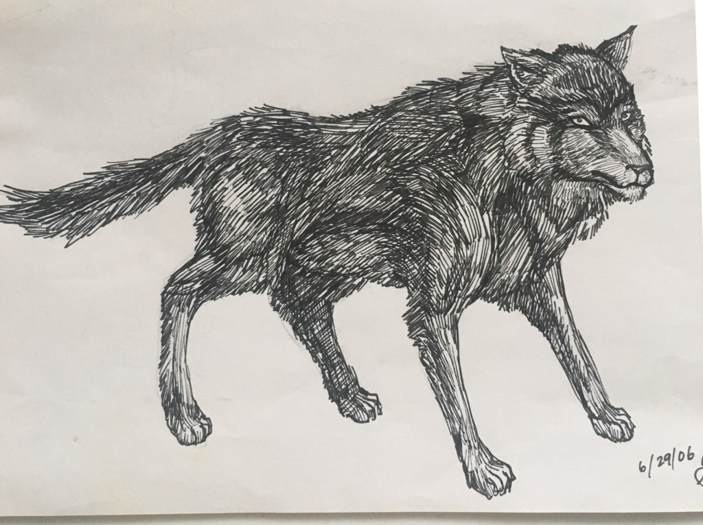 I told Gina she was a great artist. She ask me what she could draw for me. I said, “Draw me something you think I would like”. She drew me the picture you see with this story (in about 5 minutes with a ballpoint pen). It’s a “Lone Wolf”. And I still have it! I think of Gina and I pray I will get a chance to talk to her again before Glory, I don’t know where she is now. I hope God blesses her mightily as much as she blessed us!
